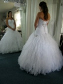 My bridal alterations, spanning over close to 30 years, have involved over 3000 wedding gowns plus many, many bridal parties. Bustling a gown can sometimes be the most complicated part of the whole alteration process. The before and after pictures below show just what can be done here at Custom Sewing!